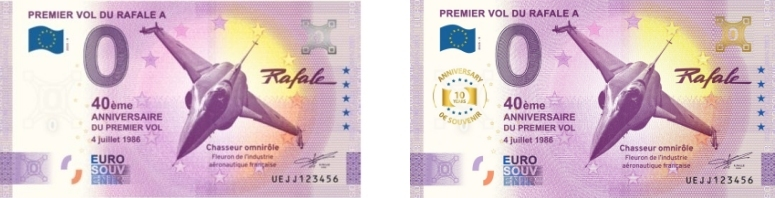 Edité à 50 exemplaires seulement, ce Collector incluant une précieuse enveloppe de type « premier jour » + un billet 0€ « Premier Vol du Rafale A » portant le même numéro sera diffusé en mode « Premiers arrivés, premiers servis » et son obtention sera limitée à un collector par passage sur notre stand.