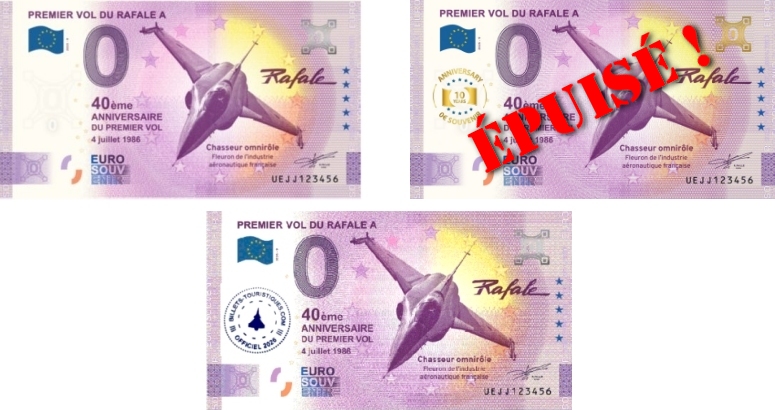 La version « Anniversary GOLD » du billet 0€ UEJJ 2025-9 « Premier Vol du Rafale A« , éditée à 1000 exemplaires, est officiellement épuisée.