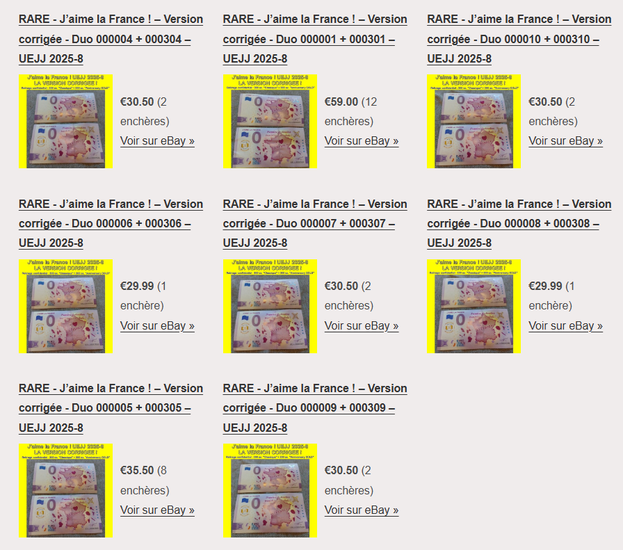 Sur les 10 lots appairés de billets UEJJ 2025-8 version Corrigée, 2 lots sont déjà partis en offres directes.