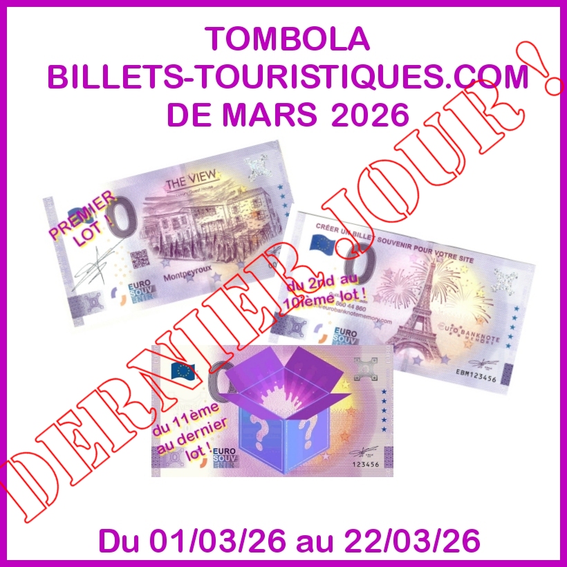 Du 12° au dernier lot, sans limite : un billet 0€ issus de nos stock (surprise !)
