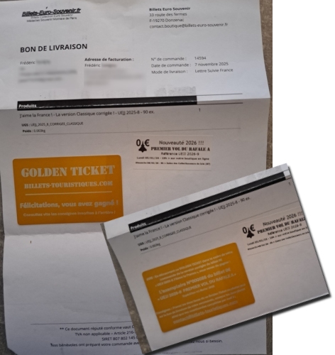 le N°000086 du billet 0€ « Premier Vol du Rafale A »