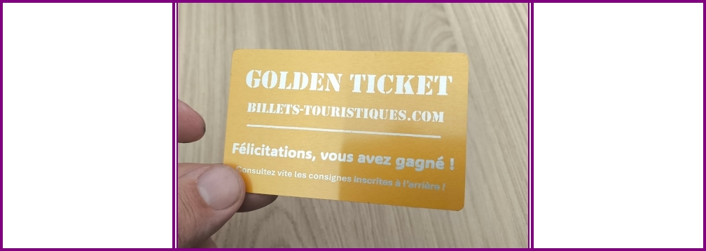 * les consignes pour recevoir le billet 0€ gagné seront indiquées au verso du Golden Ticket.